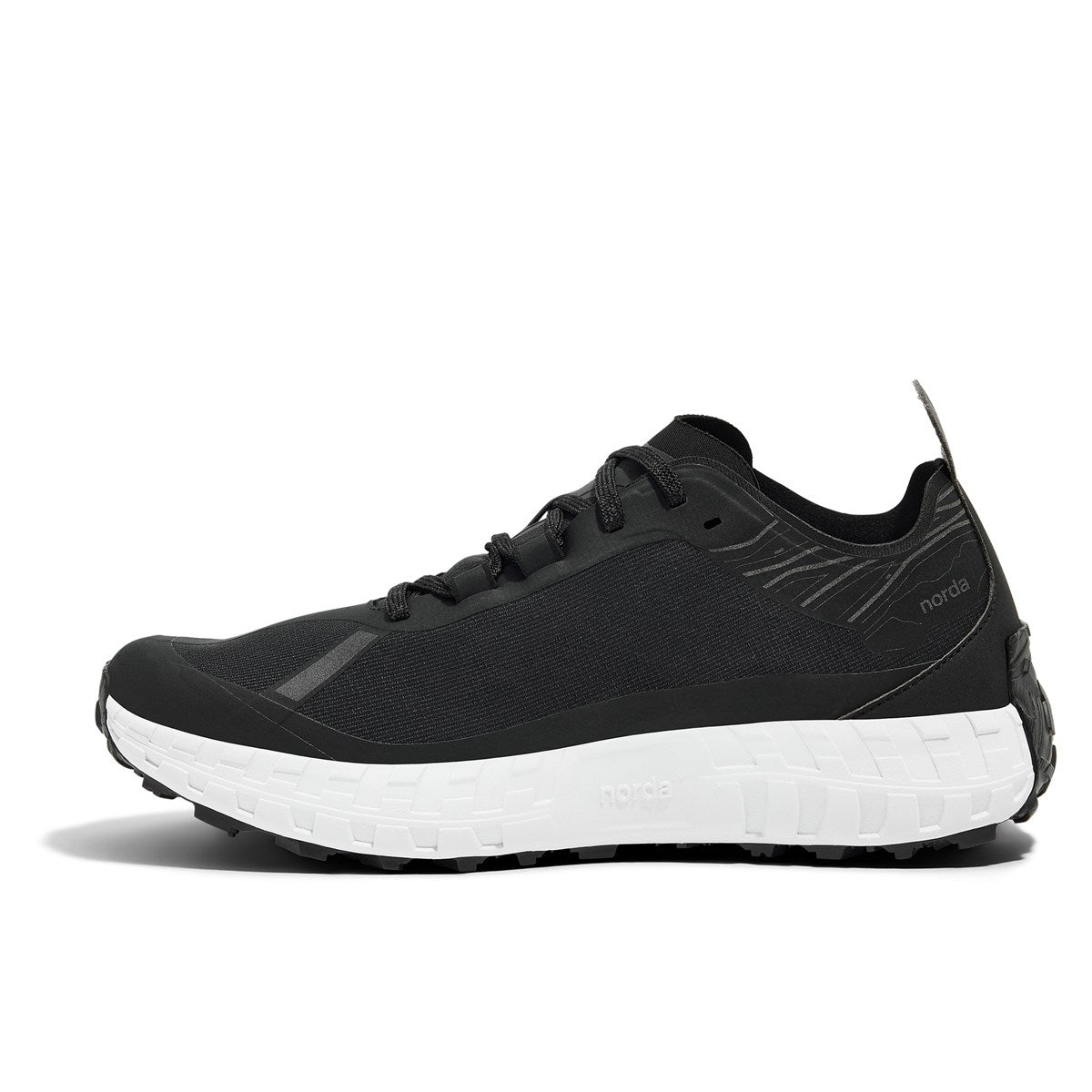「Vibram/ビブラム」社と共同開発した最高峰のクッション性と耐久性を誇る"norda x Vibram専用ソール"を搭載し、オフロードタイヤを想起させる力強い5mmラグを流麗なラインでまとめた非常に個性的な一足。
